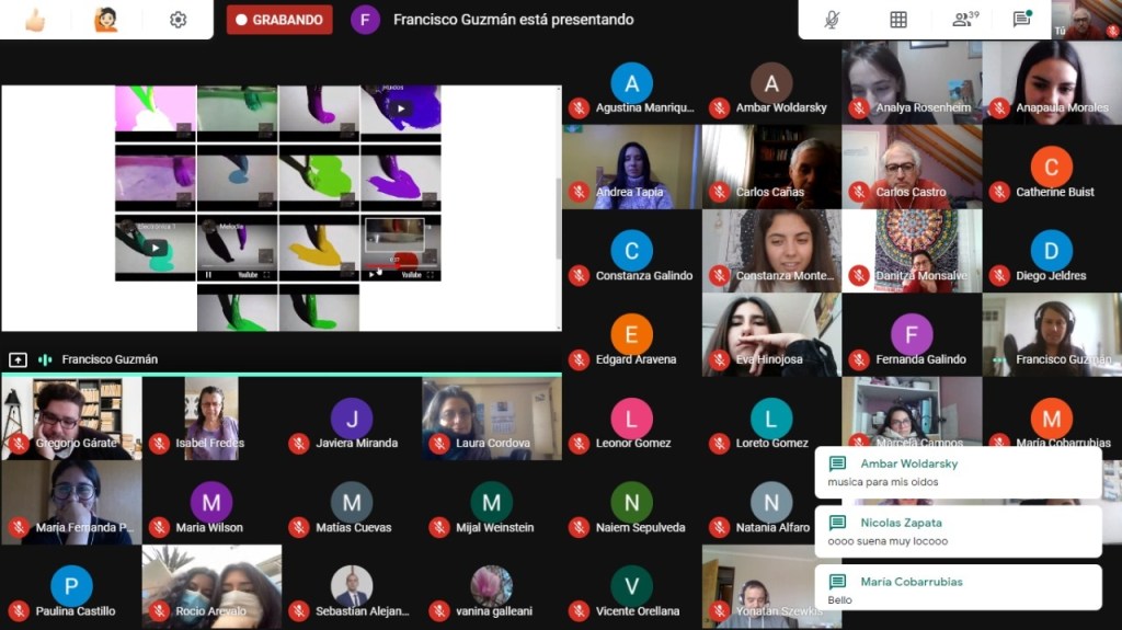 Solo decir que estoy muy contento y orgulloso del resultado. Lamento que la despedida sea tan fría pero creo que la actividad de hoy algo nos ayudo a enfrentar estos momentos complicados. El arte es la expresión más honesta de nuestras vidas y lo que logramos como obra artística es el fiel reflejo de lo que somos: Personas desordenadas, pero que en conjunto somos capaces de lograr cosas muy importantes y trascendentes. Mis felicitaciones a todos y espero haber sido un aporte desde la música y lo artístico en su formación como personas. Gracias por todo lo que aprendí con ustedes.